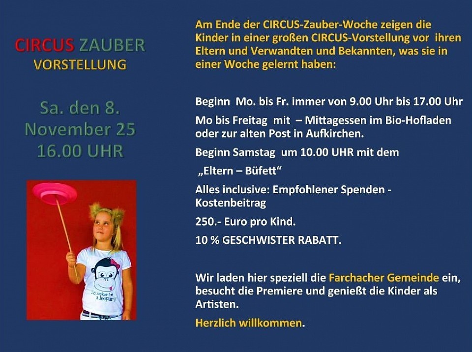 Termine für die CIRCUS HERBST FERIEN 25
